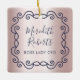 Um presente precioso para uma empresária lady. Se uma mulher na sua vida lançou um novo negócio no último ano, aqui está um presente de Natal atencioso... um ornamento de cerâmica com o nome dela em tipografia elegante e o título "Diretora Executiva Chefe" logo abaixo. Nosso ornamento apresenta um fundo de rosa metálico com uma moldura azul-marinho ornamentada em volta do texto. Todo o texto pode ser facilmente revisado no modelo de personalização.