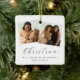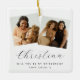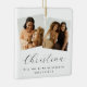 Clássico, elegante, simples Ornamento de Natal de Proposta de Dama de Honra de 3 Fotos - Peça à sua irmã, melhor amiga ou sobrinha para ser sua dama de honra no seu casamento! Todo o texto é facilmente personalizado usando o modelo fornecido. A cor do pequeno coração fofo pode ser alterada para se adequar à sua paleta de cores escolhida. Basta adicionar nome(s), mensagem pessoal e data do casamento.