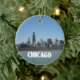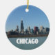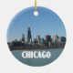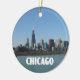 O horizonte de Chicago Illinois e a vista do lago comemorativa ornamentação para celebrar as felizes memórias de Chicago. Foto do horizonte da cidade e do lago junto com a palavra Chicago em tipografia divertida. Escolha sua forma de ornamento.