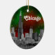 Ornamento De Cerâmica Chicago Skyline Echada, Green Red Starry Sky Xmas