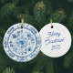 Belos designs vitorianos, no estilo vitoriano azul e branco, decoram esses ornamentos de árvores cerâmicas. Personalize as costas com sua própria mensagem pessoal! Perfeito para chique, país francês, fazenda e tantos outros décors. Faz um belo presente de anfitriã.