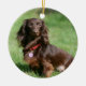 Ornamento De Cerâmica Chocolate e Dachshund diminuto de cabelos