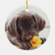 Ornamento De Cerâmica Chocolate Labrador Com Pato De Brinquedo
