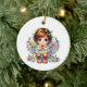 This ceramic ornament is shown with a cute holiday angel art print with a believe print on the back side.