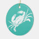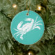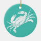 Coastal Blue and White Crab Print Ceramic Ornament. Cute light blue ornament printed with a weathered look white crab. On the rear is printed a fun white lobster and crab pattern. Ideal for the coastal home, for seafood lovers, fishermen and harbourside homes.
