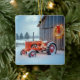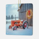 Ornamento De Cerâmica Christmas Red Farm Tractor In Snow