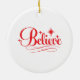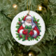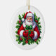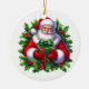 This ceramic Christmas ornament is shown with a festive Santa art print.