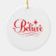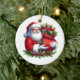 This ceramic Christmas ornament is shown with a festive Santa art print.
