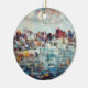 As torres medievais da cidade de Korcula aumentam acima das águas sparkling do mar de adriático na costa Dalmatian de Croatia. Esta vista impressionista foi pintada nos óleos usando uma técnica da espátula por Dragan Tupaic, proprietário da pensão do antro de Dragan em Korcula. Para mais informação ou para inquirir sobre comprar a pintura original, clique a relação do "contato".