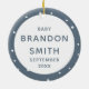 Para sempre em nosso ornamento memorial apresentando um urso com roupas azuis e asas de anjo em uma lua, e cinzas e fundo de pontos brancos. Personalizado com o ano e o nome do bebê. Se quiser alterar as cores ou a fonte do texto, clique no botão para editar a design.