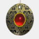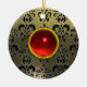 ORNAMENTO DE CERÂMICA CINZA NEGRA CLÁSSICA DAMASK VERMELHO E PEDRA RUBY
