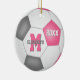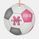 O ornamento temático deste futebol feminino apresenta um gráfico de bola de futebol sobre o qual você pode personalizar o nome do atleta, o monograma e o ano comemorativo - os painéis tipicamente negros do gráfico da bola de futebol foram recoloridos cor-de-rosa e cinzas - por katz_d_zynes