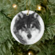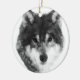 Retrato animal Canis lupus em preto e branco. Enfeite cerâmico redondo atrativo para qualquer um. Você pode transferir este design para outro produto de sua escolha, basta usar uma opção à direita desta descrição.