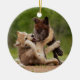Ornamento De Cerâmica Cinza Wolf Pups Luta