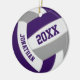 Essa equipe de vôlei colora ornamento para meninos ou meninas apresenta um vôlei de aparência realista com painéis roxos, cinzas e brancos - personalizados com o nome e ano do atleta na frente e no verso do ornamento - por katz_d_zynes