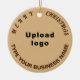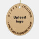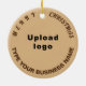 Feliz Natal! O ornamento cerâmico com textos de saudação de Feliz Natal, nome e logotipo da sua empresa ou empresa. Designs são textos castanhos escuros sobre fundo castanho claro e em forma circular. Ornamento para decorar a árvore de Natal em sua loja, compro ou escritório. Ornamento para receber visualmente seus clientes nesta temporada de feriados e anunciar sua empresa ou promover seu nome de marca. Personalize-o e use-o para criar reconhecimento de nome de marca. Verifique a aparência após carregar o logotipo e digitar o nome da sua empresa. Se a aparência lhe agrada, você pode colocar seu pedido agora. Se você precisar redimensionar e mover o logotipo e os textos para o ajustado neste ornamento ou em outros estilos que você escolher, mude na ferramenta design. Você também pode fazer outras alterações de acordo com sua preferência na ferramenta design, como alterar a cor do ornamento, a cor da fonte e o estilo da fonte. Feliz Natal! Desejo mais vendas para você neste feriado.