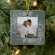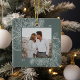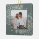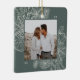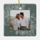 Um ornamento de feriado moderno e elegante que enquadra sua foto quadrada favorita em um quadro perfeitamente detalhado com ramos de pinheiro, folhas de inverno, anis estrelado e fatias de citrinos em um fundo verde de floresta mudada. Personalize a parte de trás deste único ornamento fotográfico de Natal com o seu nome familiar.