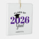 Este Enfeites de natal de graduação é um presente perfeito para a classe do formando 2025. A design apresenta o ano em roxo com um chapéu de graduação de cartão. Personalize com o nome do formando.