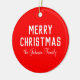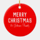 Um Enfeites de natal clássico de cor vermelha vibrante. Apresentando um texto branco ousado e moderno que diz "Feliz Natal", ao lado de um nome escrito à mão ou sobrenome personalizado do destinatário, fazer-o um toque atencioso e único para a oferta de férias.