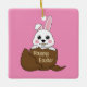 Ornamento De Cerâmica Coelhinho Branco Bonito em Felz pascoa de Ovo de C