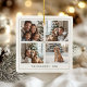 Nosso enfeite de Natal moderno apresenta uma colagem de quatro fotos, um arco elegante, um fundo com textura suave, e texto que pode ser personalizado com seu nome de família e ano. É a manutenção perfeita para casais e famílias que valorizam a vida intencional e o estilo de eterno. Os quatro quadros fotográficos quadrados exibem momentos favoritos do ano e combinam perfeitamente com a fina fronteira e o charmoso arco de coquete pálido no centro - um tom lúdico para dar presente festivo. Na parte inferior, há um texto moderno que você pode personalizar com seu nome de família e o ano. O design de cheio é repetido em ambos os lados para que você possa desfrutar dos detalhes, independentemente de qual lado estiver mostrando. O fundo guinchado delicado e bege adiciona textura e suavidade, enquanto a paleta neutra complementa qualquer fotografia. Basta adicionar suas próprias fotos no editor do Zazzle para criar uma bela manutenção - seja para vocês mesmos ou para compartilhar seu amor e alegria sazonal com amigos e familiares.