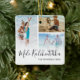 Elegante enfeites de natal do Havaí apresentando uma colagem de 3 fotos de sua maravilhosa família, o ditado "mele kalikimaka", dois desenhos de estrelas oceânicas, seu nome de família e o ano.