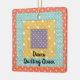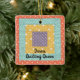 Este ornamento encantador é decorado com uma design de retalhos. A imagem e o texto são personalizáveis para que você possa mudar a manta de retalhos para uma delas, assim como o nome ou torná-la um monograma, se desejar. Perfeito para os seus colchetes!