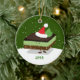 Um Enfeites de natal comida divertido com um sorridente bar Nanaimo vestindo um chapéu de Papai Noel. O bar de sobremesa feliz está parado sobre um fundo de neve e o design inclui um ano personalizável. Você encontrou este ornamento, então claramente era a Mint. Simplesmente adicione seu ano, adicione este ornamento ao seu carrinho e aproveite-o na sua árvore de Natal. Mint Nanaimo Bar Santa Comida Ano Natal Ornamento Cerâmico Sweetsham Comida Arte | ©Melissa Patton Artist/Illustrator