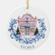 Este Enfeites de natal tem Compro francês cor-de-rosa e azul com coroa azul úmida. Você pode personalizar com um nome.