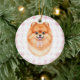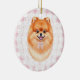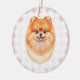 Ornamento De Cerâmica Coquette Brown Pomeranian Dog Pink Gingham Bows
