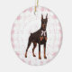 Ornamento De Cerâmica Coquette Doberman Pinscher Pink Gingham Bows