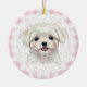 Ornamento De Cerâmica Coquette Maltese Dog Pink Gingham Bows