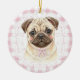 Ornamento De Cerâmica Coquette Pug Dog Pink Gingham Bows
