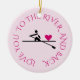 Um adorável ornamento cor-de-rosa com um tema de remar. De um lado está o pictograma de um remador que transporta um coração, com texto editável em cor-de-rosa profundo: "AME VOCÊ AO RIO E VOLTA". Do outro lado, carregue sua foto favorita. Para Dia de os namorados, para o Natal, para qualquer ocasião romântica.