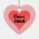 O texto cruzado através de um coração com um padrão de pontos cruzados é uma design única para hobbyists de trabalho de agulha nos aniversários e feriados.