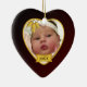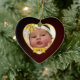 Ornamento De Cerâmica Coração Dourado vermelho escuro do primeiro Natal