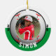 Celebrar os triunfos atléticos do seu filho em uma pequena liga, faculdade ou beisebol de segundo grau ou equipe de bola suave com esta Ornament de Cores da Equipe Branca Verde Baseball. Personalize com a foto, o nome e o ano do seu filho. Uma ideia de presente de excelente para vovó e vovô.