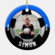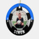 Celebre os triunfos atléticos do seu filho na liga jovem, faculdade ou futebol segundo grau com este Ornamento de Cores da Equipe Negra Azul de Futebol. Personalize com a foto, o nome e o ano do seu filho. Uma ideia de presente de excelente para vovó e vovô.