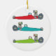 Três carros de corridas de arrasto em design gráfico desenhado à mão - veículos do tipo dragão com corpo longo, motor grande e rodas gordas.