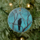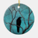Um corvo solitário numa árvore de inverno feito a partir da minha fotografia. A frente é uma cor aqua e a parte de trás é a fúcsia.