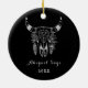 Este ornamento da árvore de Natal de Natal apresenta um crânio tribal boêmico decorado com flores e penas todas feitas em tons de preto e branco. O verso é personalizado com um nome, ano ou qualquer texto que você queira adicionar. *