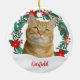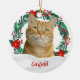 Este ornamento apresenta uma foto personalizada de animal de estimação e o nome sobre a coroa de natal.