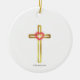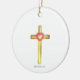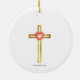 Ornamento De Cerâmica Cross with Heart in the Middle - round,