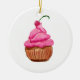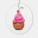 Ornamento De Cerâmica Cupcake rosa com cereja