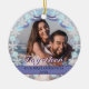 Fancy purple hue personalized photo ornament to display your own special memory. The snowflakes and ribbon in soft purple and blue color encircles the photo, creates a dreamlike atmosphere. The word "Together" is designed in a beautiful handwritten white script style and with a shadow so that it will be displayed clearly on either light or dark background. The back and the front are the same. Easily place your own memorable photo in place of the template photo as well as the year to make your own ones and send them to your friends and family. What a fantastic way to celebrate your first Christmas together!
