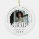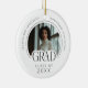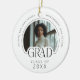 Capture a special milestone with this stylish and modern circle ceramic ornament. Featuring a chic black and white design with modern typography, it's the perfect keepsake for any graduate. Fully customizable, you can easily upload a favorite photo of your graduate and personalize the text. Add the graduate's name, school name, and the class year to create a truly unique memento. This double-sided ornament is a thoughtful and memorable graduation gift for high school, college, or any academic achievement. Use it as a Christmas ornament on the tree or an everyday decorative item to celebrate their success! © Kimbellished, LLC
