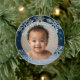 custom photo Christmas ornament, Scandinavian style Christmas decor, navy and white holiday ornament, Nordic deer Christmas ornament, personalized ceramic photo ornament, snow and tree Christmas decoration, minimalist winter holiday ornament, custom family photo keepsake, modern Scandi Christmas gift, personalized first Christmas ornament