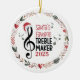Get into the holiday spirit with this customizable Christmas ornament for music lovers. The front features a playful illustration of a treble clef wearing a Santa hat, surrounded by festive musical notes and holiday accents. Typography that says, “Santa’s Favorite Treble Maker” adds a lighthearted musical pun to this design. Add your own photo on the back then modify the name and year to create a one-of-a-kind personalized gift that’s perfect for music teachers, music students, or any music lover on your holiday shopping list. Makes a great stocking stuffer, too.
