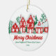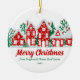 This cute custom real estate holiday ornament is perfect for realty business marketing. Customize these Merry Christmas ornaments with your company name under the red houses covered in winter snow and lined with festive green trees.