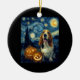 Cute Basset Hound Dog Halloween Jack O Lantern Pumpkin Face Starry Night Van Gogh Style